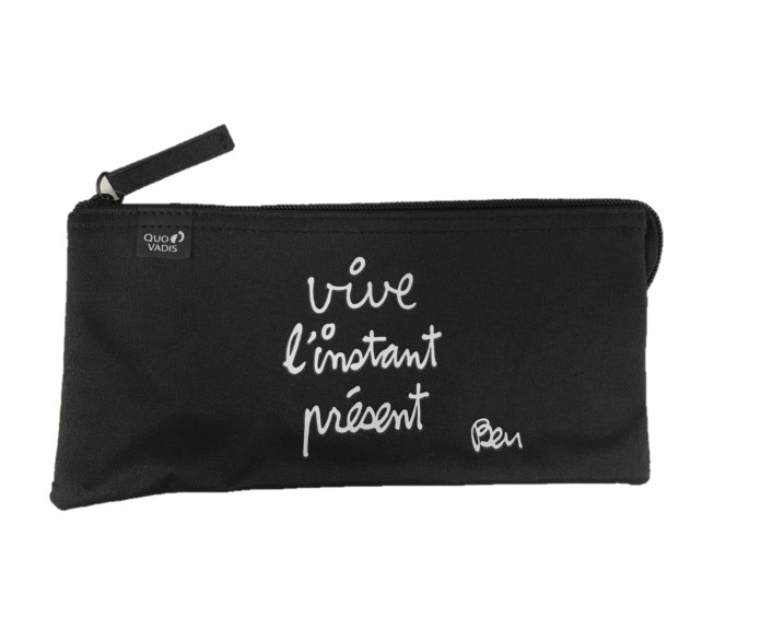 Étui à crayons QuoVadis 3 compartiments. Inscription : vivre l'instant présent